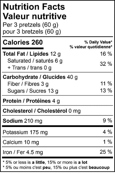 Ingredients: Pretzel (enriched wheat flour, water, canola oil, salt, malt, yeast, sodium bicarbonate), Dark chocolate (sugar, cocoa liquor, cocoa butter, butter oil, sunflower lecithin, soy lecithin, natural vanilla, milk), Beurre, Sea salt.